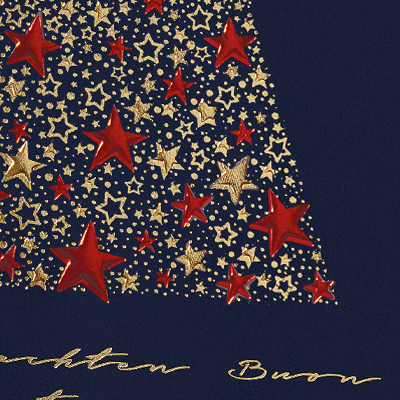 Die Weihnachtskarte mit Rot- und Goldfolienprägung auf dunkelblauen, samtartigen Feinstkarton, ist eine elegante und festliche Möglichkeit, Weihnachtsgrüsse zu übermitteln.