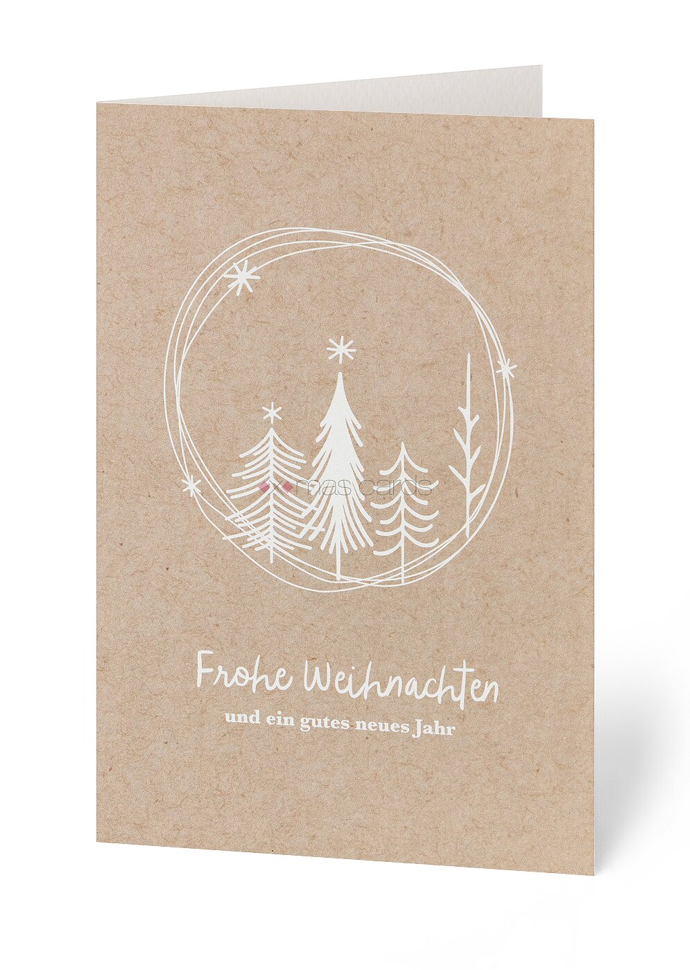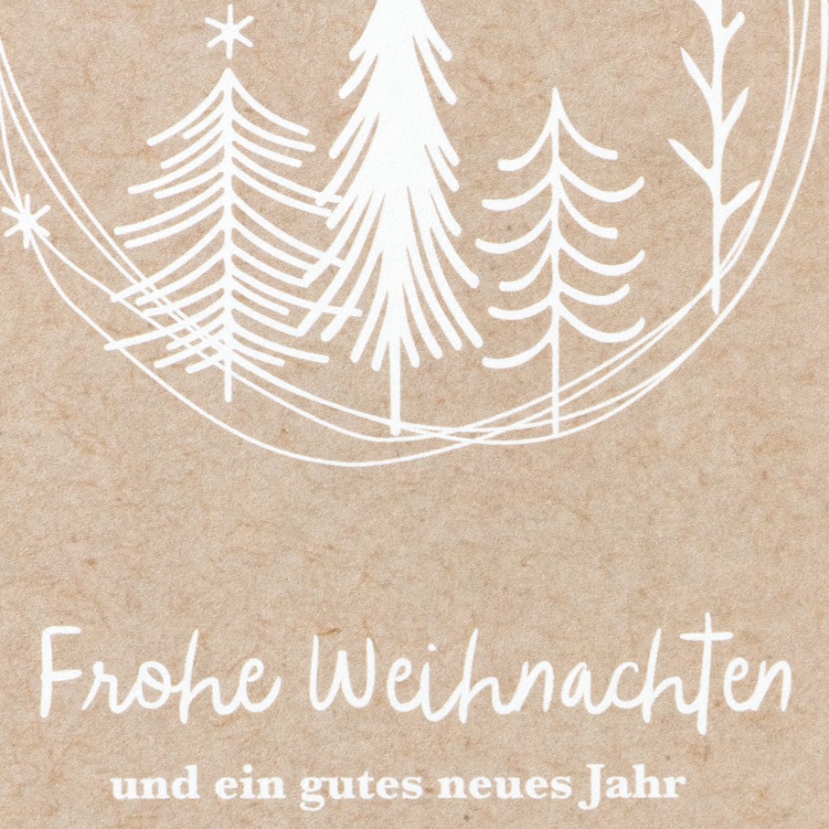 Weihnachtsgruss auf hellem Feinstkarton mit verspielten weissem Weihnachtsmotiv. Topangebot.